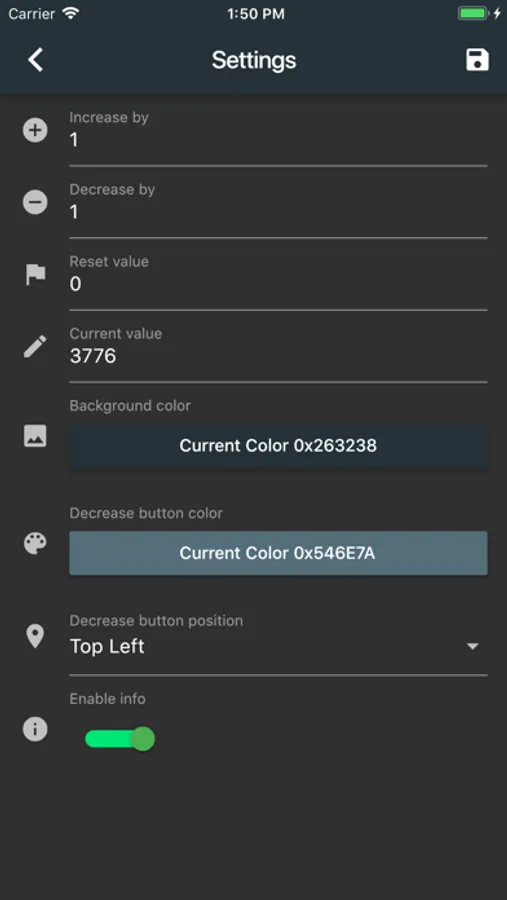 When you tap on any part of the screen, tap "Increase", tap the minus button to "Decrease".