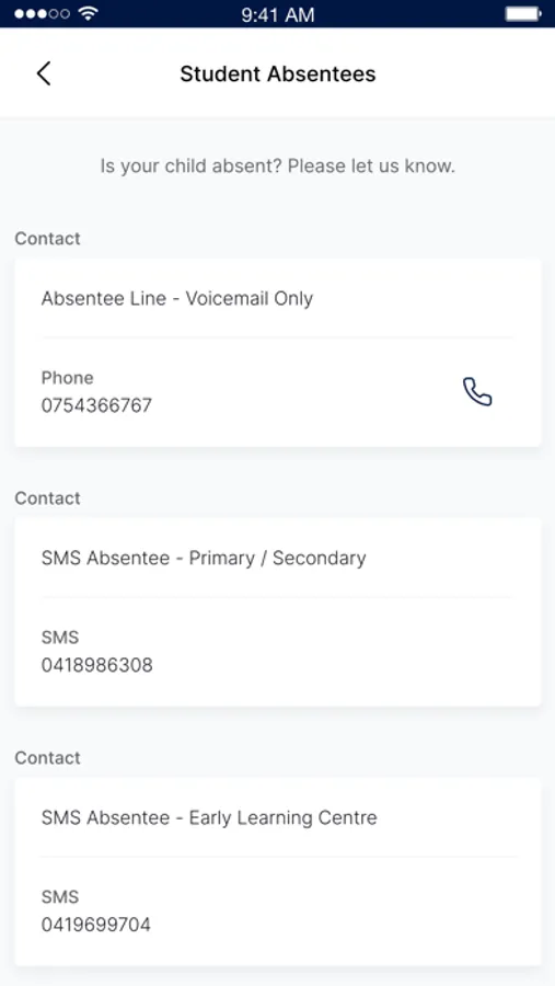 Other features such as a quick and easy Contact Directory help you to reach Caloundra Christian College with the tap of a button