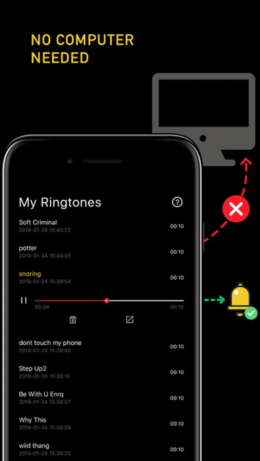 No computer needed: for the first time, you can install and set all your ringtones directly and only from your iPhone! No iTunes synchronization needed!
