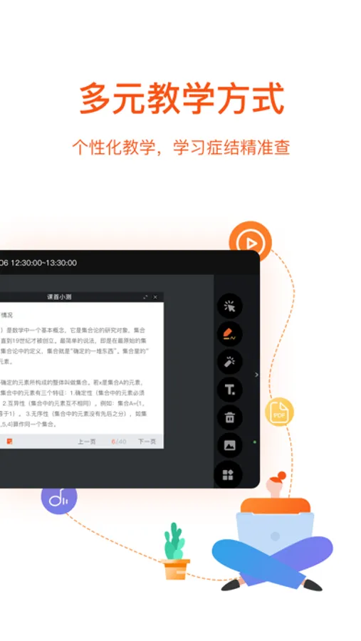 【多样教学课件】支持多样教学课件,包括自研导学案、PDF、视频、音频等,支持多个课件组合式教学,满足更多教学场景。