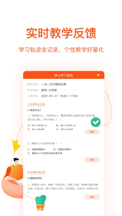 【IPTS学习报告】课后及时生成学习报告,围绕教学活动实现高效家校互动,打造个性化学习系统。