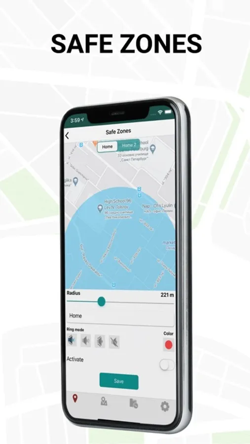 Safe Zones: The MyKi SPOT app allows you to set special safety zones in advance. If the device leaves or enters any of these preset zones, you will immediately receive a notification.