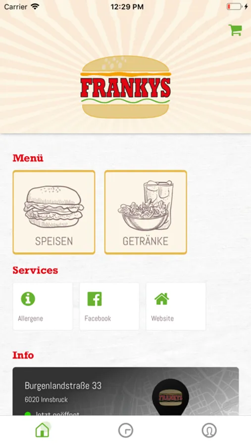 Frankys Restaurant in Innsbruck. Große Auswahl, kleine Preise. Burger, Pizza, Bosna, Cevapcici, Chicken Wings u.v.m.