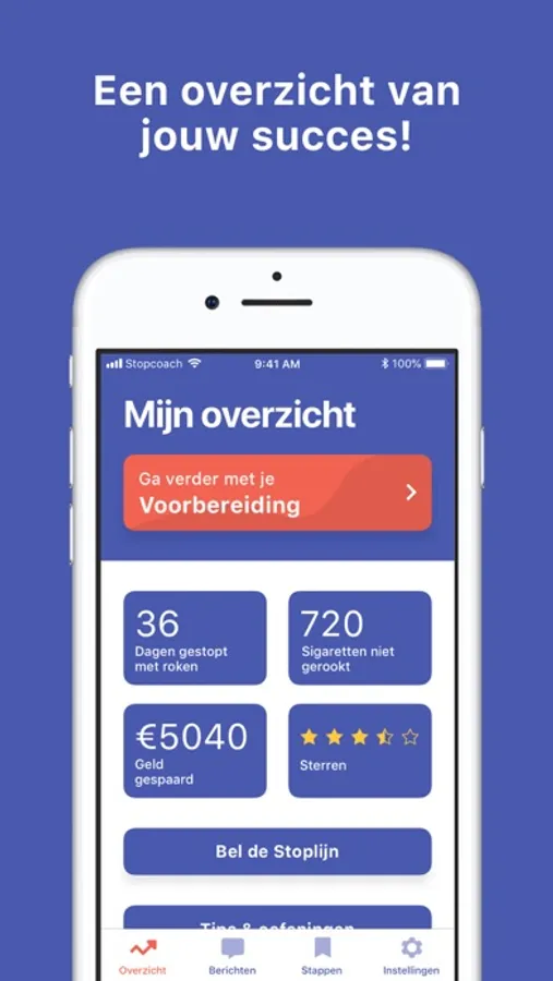 - Begin goed: de app helpt je om je goed voor te bereiden op het stoppen met roken