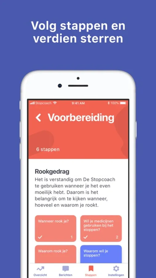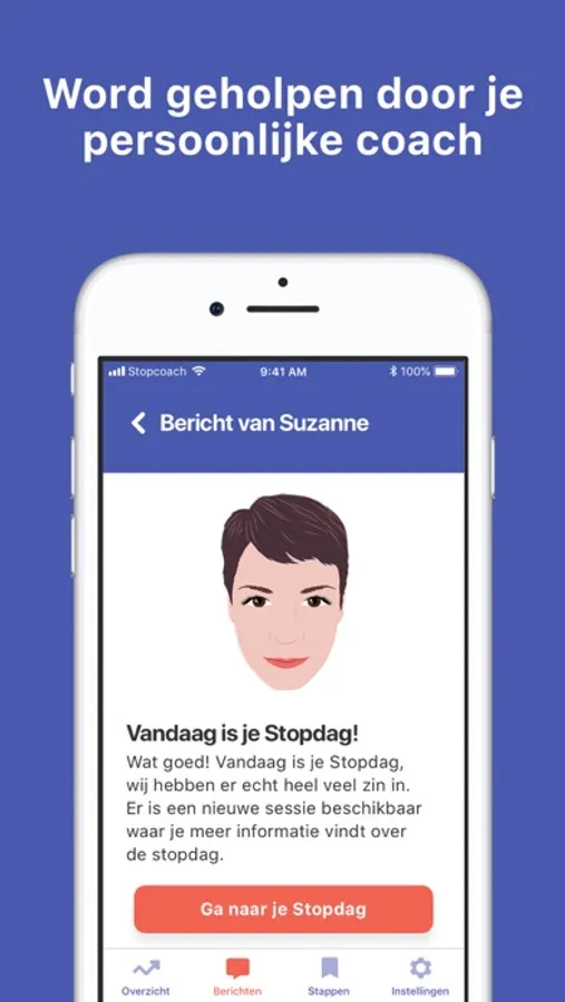 De Stopcoach app helpt jou om te stoppen met roken. En gestopt te blijven. Kies jouw eigen coach die jou een steuntje in de rug geeft op momenten dat je het moeilijk hebt.