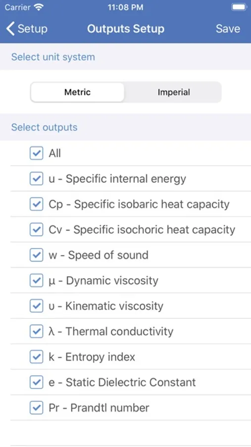The parameters are shown in SI(metric) or in I-P(English) system of units, which can be reset in the Outputs Setting function of the app.