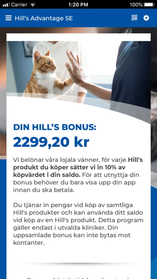 Denna mobilapp och lojalitetsprogram är endast för hund- och kattägare som bor i Sverige. En bonusapp där du tjänar bonus för varje köp av hund- eller kattmat från Hill's Pet Nutrition. Gäller för inköp av följande varumärken: Science Plan, Vet Essentials och Prescription Diet. Gäller endast i utvalda veterinärkliniker.