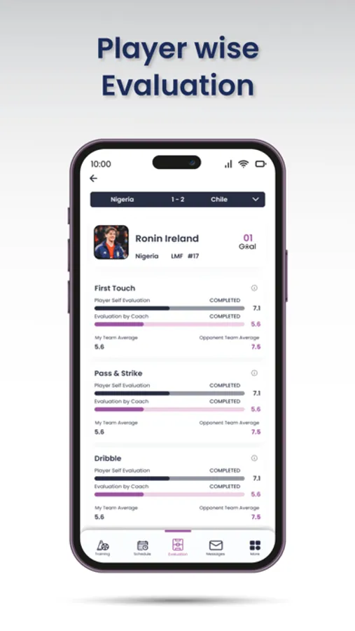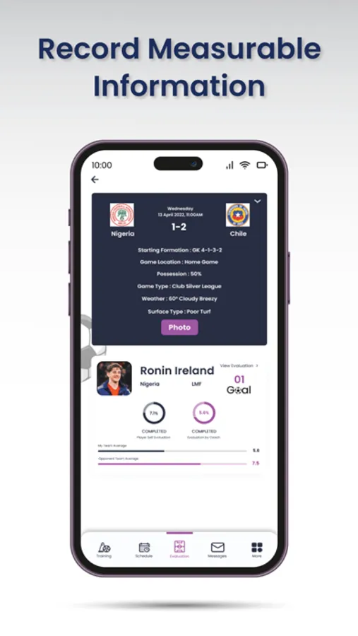 Coach then enters their own Evaluative Analysis of each individual Player performance and the Player completes a Self Eval, all done in a unique ‘DOUBLE BLIND’ environment, using the exact same Criteria. That process takes only several minutes per player.