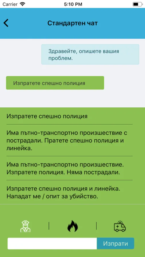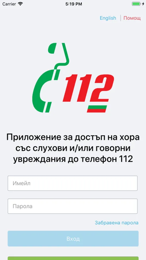 The application provides to Bulgarian and foreign citizens with hearing and/or speech disabilities on the territory of the Republic of Bulgaria a quick and easy access to the 112 Emergency number. It is necessary that the users register into the application by following the registration steps. Once the registration is active, the users can sign in the application, and in case of emergency to make a connection (establish a chat session) with an operator of the 112 Emergency number.