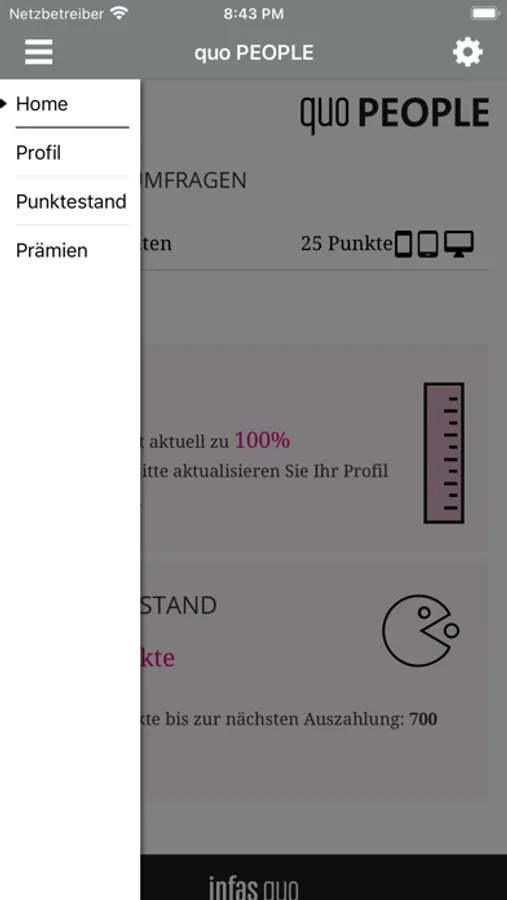 Diese APP ist Ihr mobiler Zugang zur Online-Community quo PEOPLE von infas quo, einem Marktforschungsinstitut aus Nürnberg. infas-quo ist ein 100%iges Schwesterunternehmen des infas Instituts für angewandte Sozialwissenschaft in Bonn.