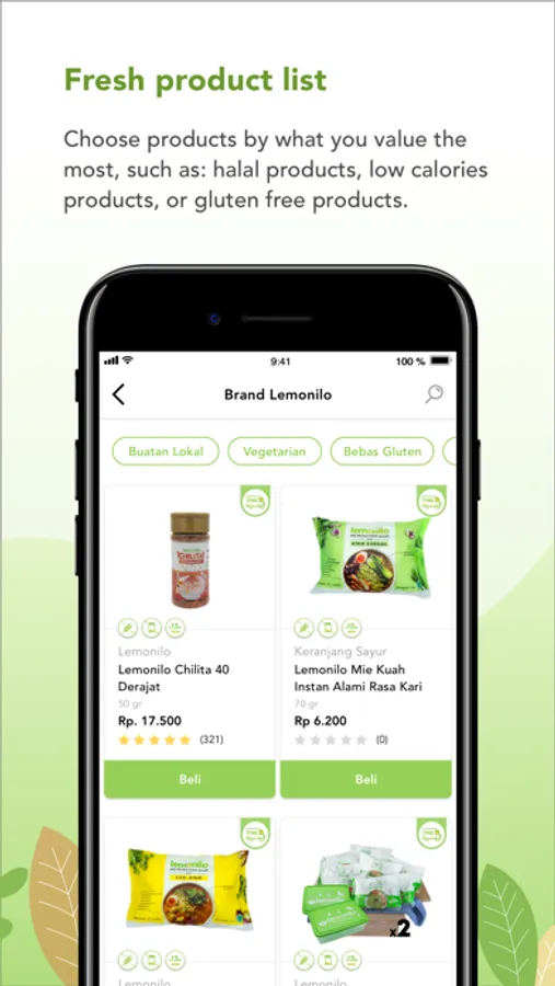 Various healthy product categories: you can search products based on categories, such as halal, vegetarian, or gluten-free products.