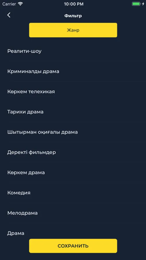 Для того, чтобы вы легко нашли нужный фильм, в приложении есть поиск фильмов по жанрам, по годам.