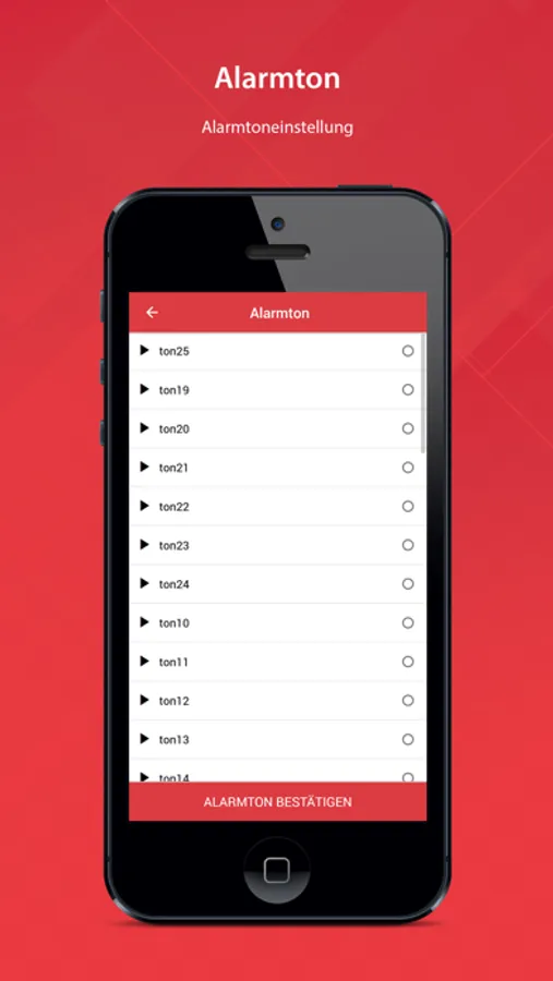 - Sie können aus einer Auswahl von circa 20 Alarmtönen wählen