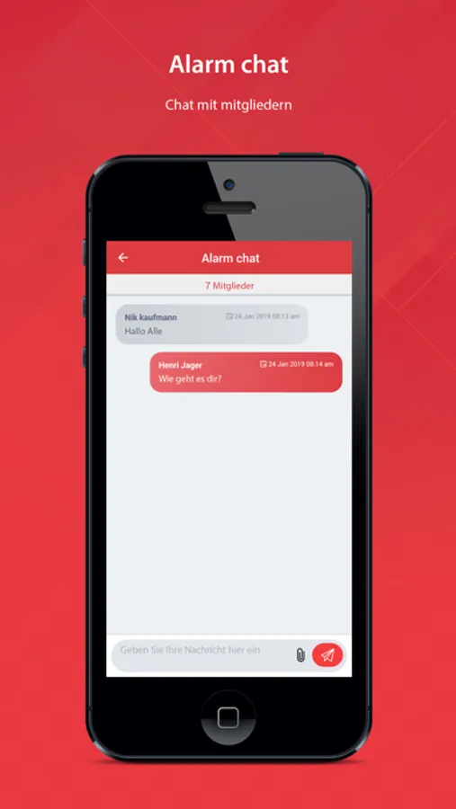 - Integrierter verschlüsselter Einsatzchat zur Kommunikation mit allen alarmierten Kräften