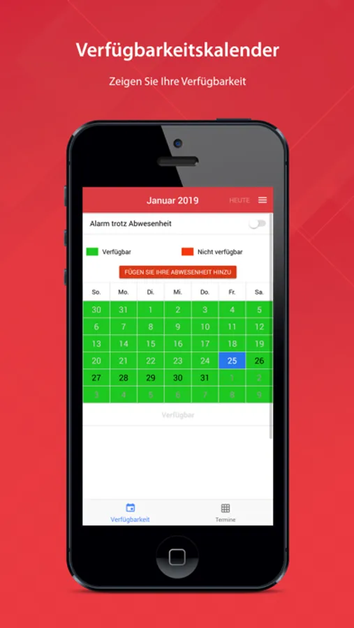 - Verfügbarkeitsplanung über eine Kalenderfunktion
