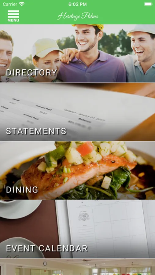 Exclusively for the Members of Heritage Palms Golf & Country Club. This app is designed to enhance the Members experience at Heritage Palms and provides valuable tools and information. By downloading this app you can: * Browse the member directory and contact information * receive Club communication through push notifications * access the hours of operation and Club contacts * access your monthly member statement * view the calendar, events, newsletters and flyers * view menus and make dining reservations * view club and committee social events