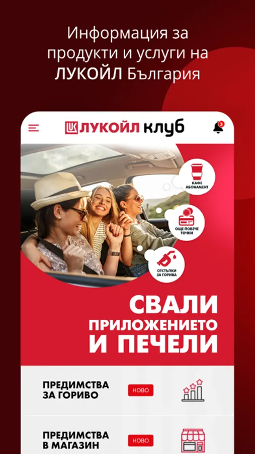 Приложението „ЛУКОЙЛ Клуб“ дава възможност на потребителите да получат разнообразна информация относно продуктите и услугите на бензиностанции „ЛУКОЙЛ“ в България.