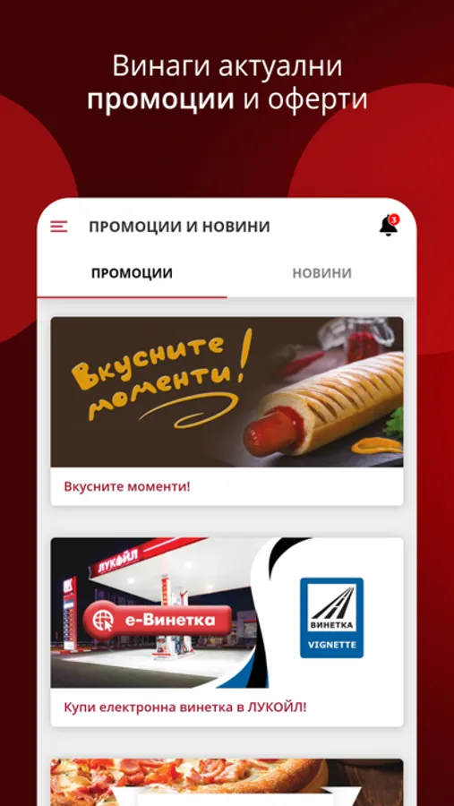 Научавате за актуалните промоции и оферти бързо и лесно, за да сте сред първите възползвали са от тях. Удобно и лесно се информирате за най-новото в света на „ЛУКОЙЛ“.