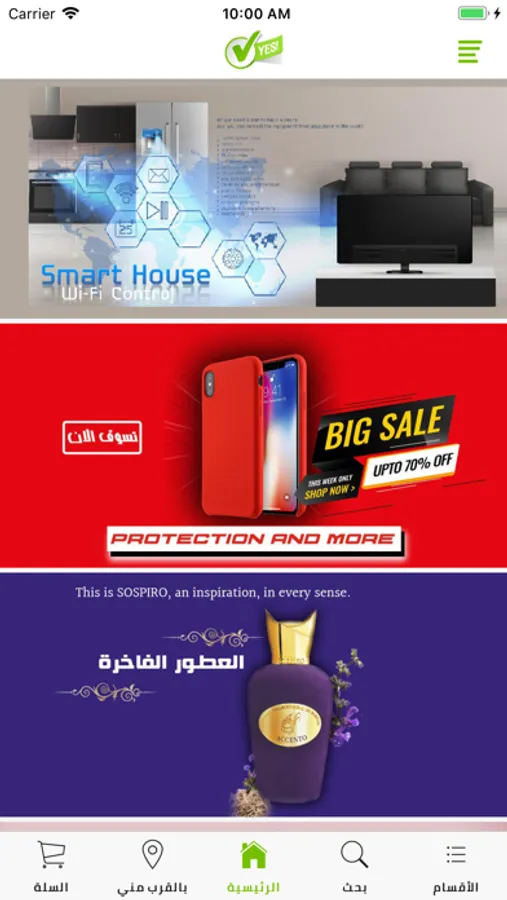 تطبيق يس لبيع اكسسوارات الهواتف النقالة مع امكانية مشاهدة المتاجرة القريبة منك بالأضافة الى امكانية الطلب والتوصيل ويمكنك الاطلاع على كل ما هو جديد من عروض تشجيعية
