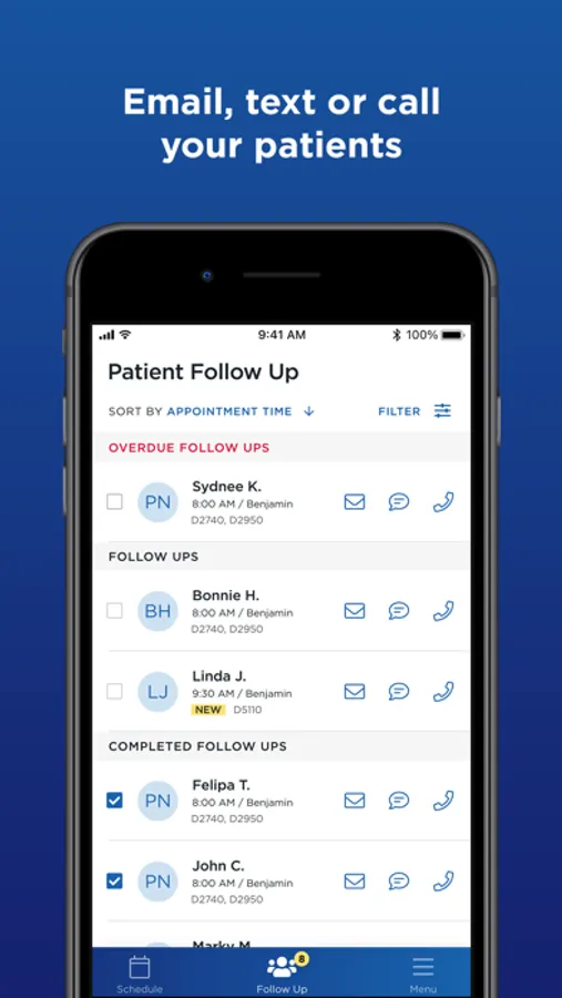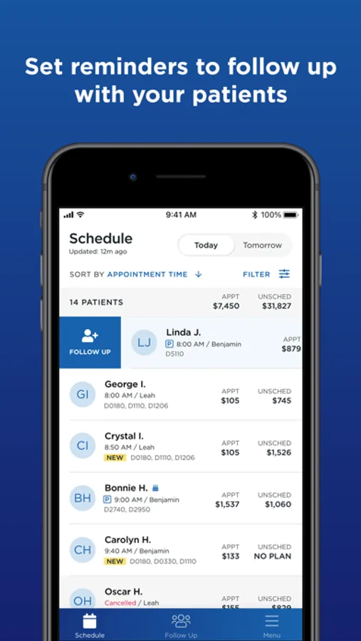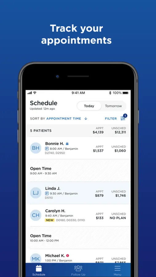 · View today’s patients at a glance and quickly find scheduling gaps.