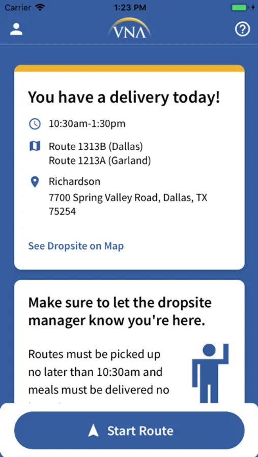 Dallas, Let’s Do Lunch! Your delivery experience just got easier with the VNA Meals on Wheels App allowing volunteers and drivers to:
