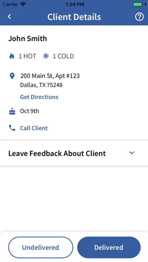 • Mark meals as delivered or undeliverable