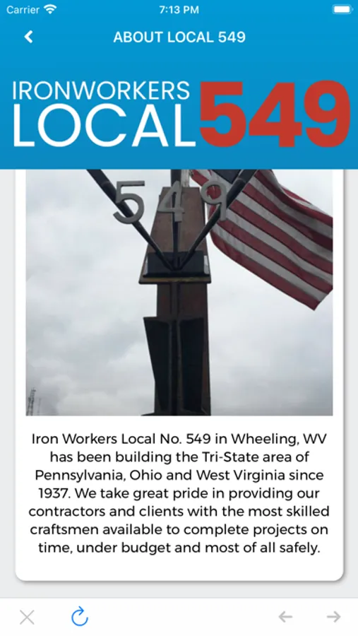 Local 549’s office and apprenticeship is located at 2350 Main Street, Wheeling, WV 26003. Local #549 serves the jurisdiction of Northern West Virginia, South Eastern Ohio and Western Pennsylvania. Local #549 is committed to providing a highly skilled workforce who is a safe, productive and dedicated membership. We have over 537 members and continue to grow. Our members build your schools, hospitals, bridges and shopping centers. Ironworkers Local #549 prides itself in a long tradition of hard work and strong work ethic. We provide our members a health insurance, pension, and a training program that is second to none. Our contractors enjoy a large supply of well-trained Ironworkers who meet or exceed their needs. Local #549 is committed to its members and contractors’ success.