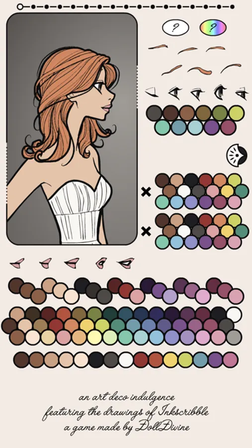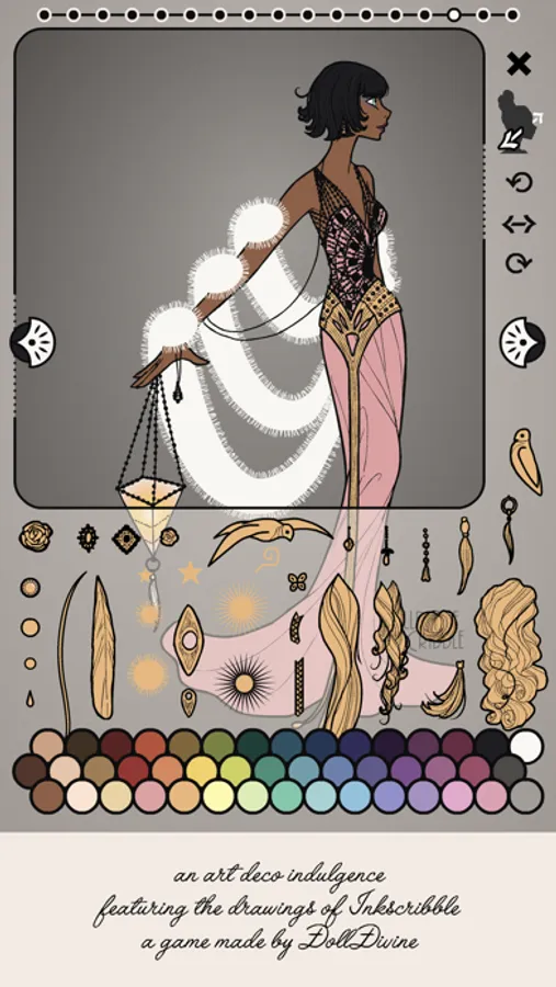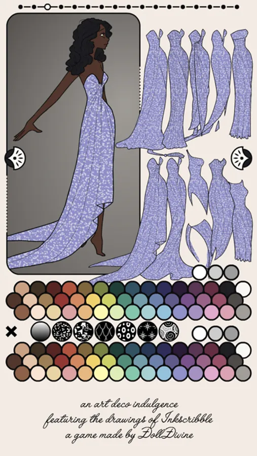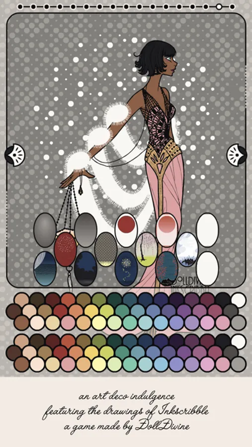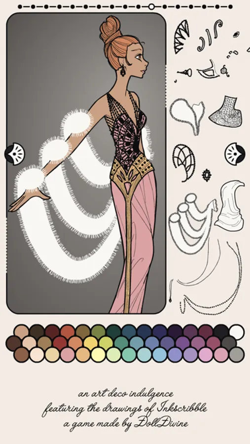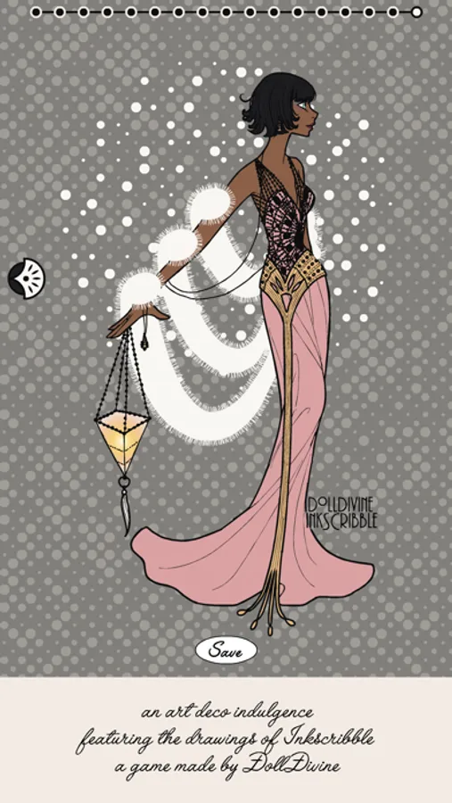 A doll maker inspired by the works of Romain de Tirtoff (known by Erté), celebrated Russian-born French artist and designer. The maker embodies his love of draping and intricate details. Re-create the famous works of Erté, or put your own spin on these Art Deco period inspired looks. This concept was entirely inkscribble's idea. Until she suggested the theme, I had never before heard of Erté. But when I started researching his work I recognized a lot of pieces, I just didn't know they were all by one man. Needless to say I fell in love and this has been one of the most inspiring games to work on! Working on art deco dresses and accessories, as re-imagined by inkscribble was an absolute joy. And now the dress up brings art deco fashions to your mobile phone :)