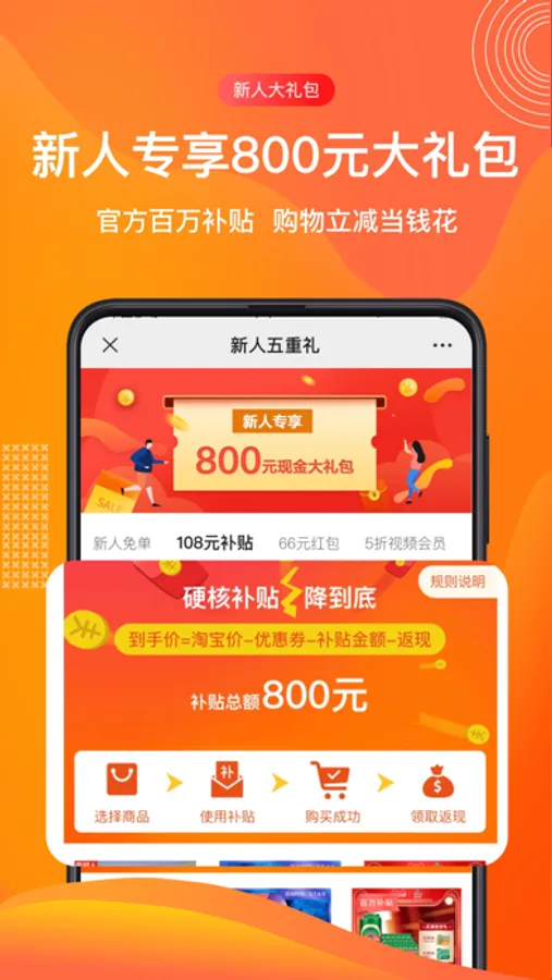 2.用户再享大额购物补贴和优惠券-专属108元购物津贴,购物立减当钱花!