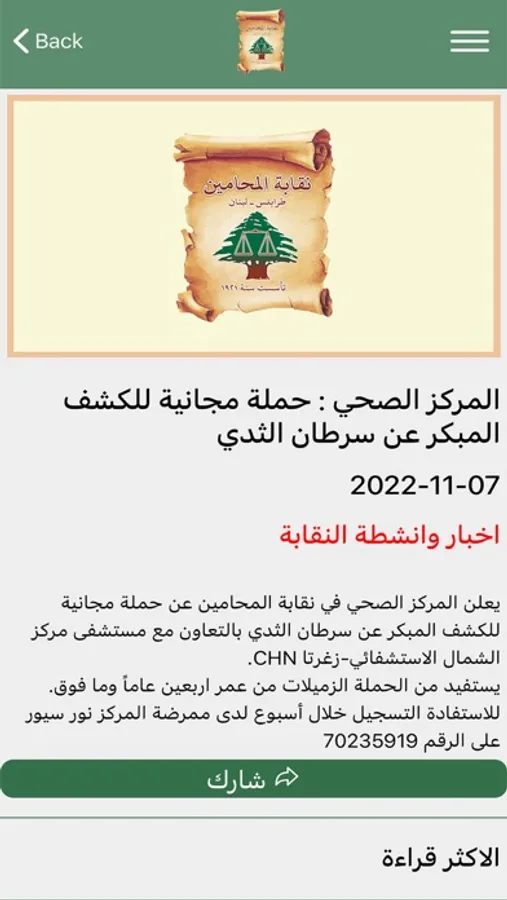 سيسمح هذا التطبيق للمستخدمين بتلقي إشعارات بأحدث الأخبار وسيسمح بالبحث عن المحامين المنتسبين للنقابة بالإضافة إلى تصفح المقالات الإخبارية ذات الصلة أو فئات الأخبار المهمة وكذالك وجود صفحة للروابط المفضل