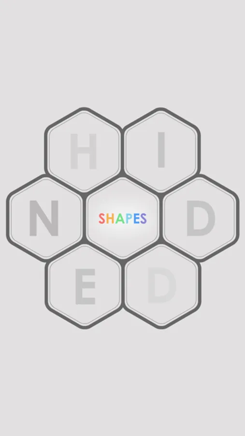 hidden shapes is a spatial ability puzzle game. There is no time limit, move limit and points in the game. You just need to find the shape on the centre which is hidden in one of the six hexagons.