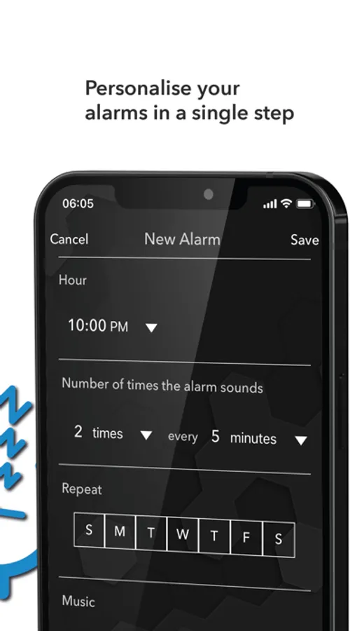 • Relaxing sounds will be played before your alarm is triggered.