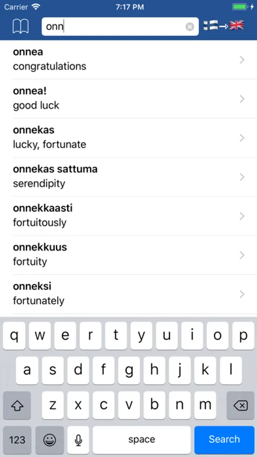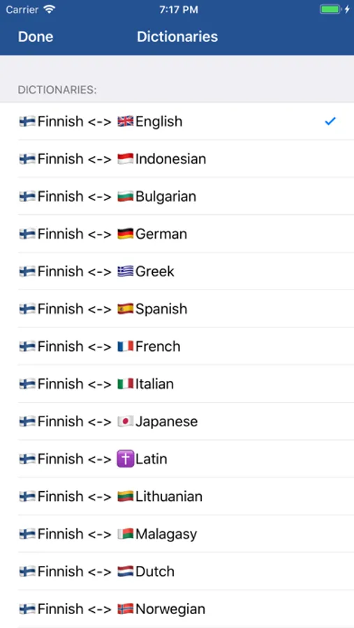 Easily translate between Finnish and 20 other languages with offline and online dictionaries. See translations instantly while typing. Listen to pronunciation. Quickly check images associated with the word or its translations.