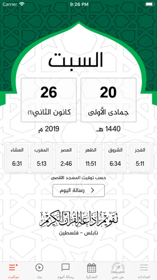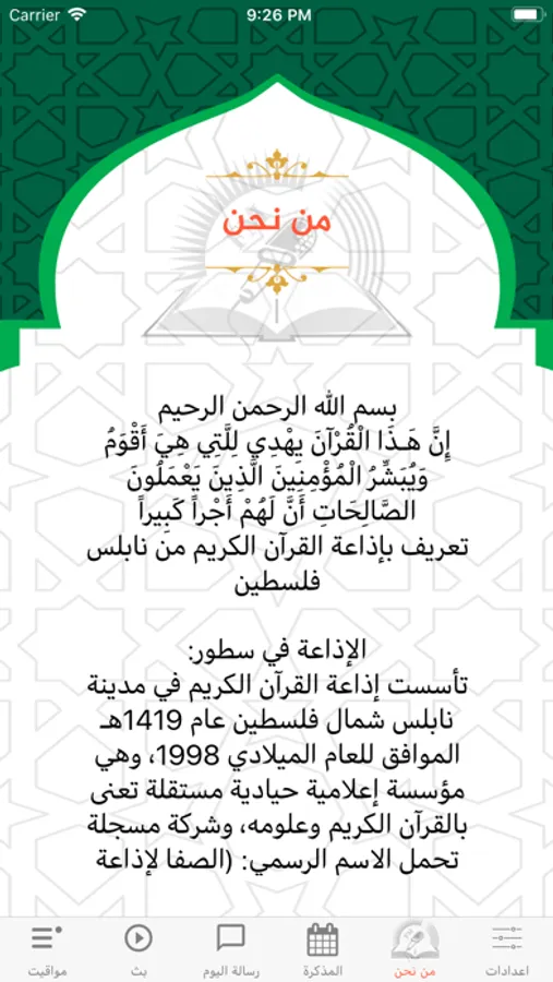 روزنامة الإذاعة، هي تقويم إذاعة القرآن الكريم-نابلس بصورته العصرية.