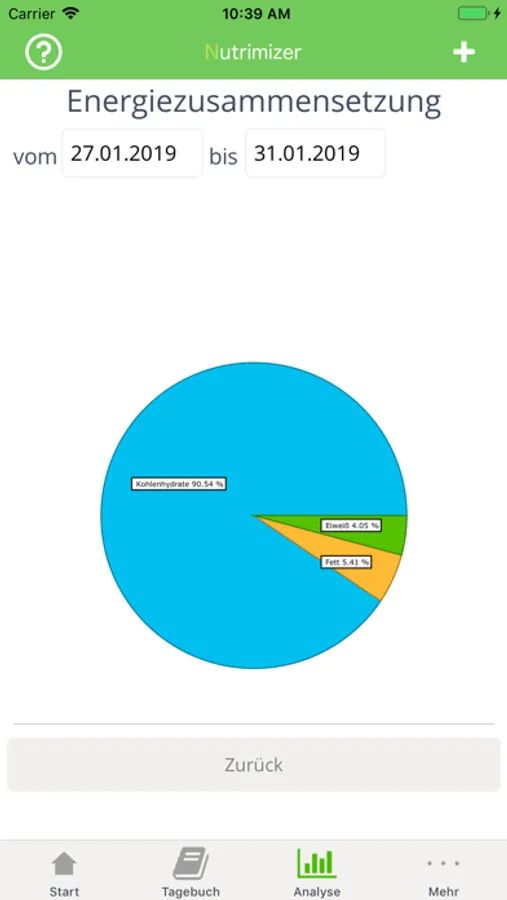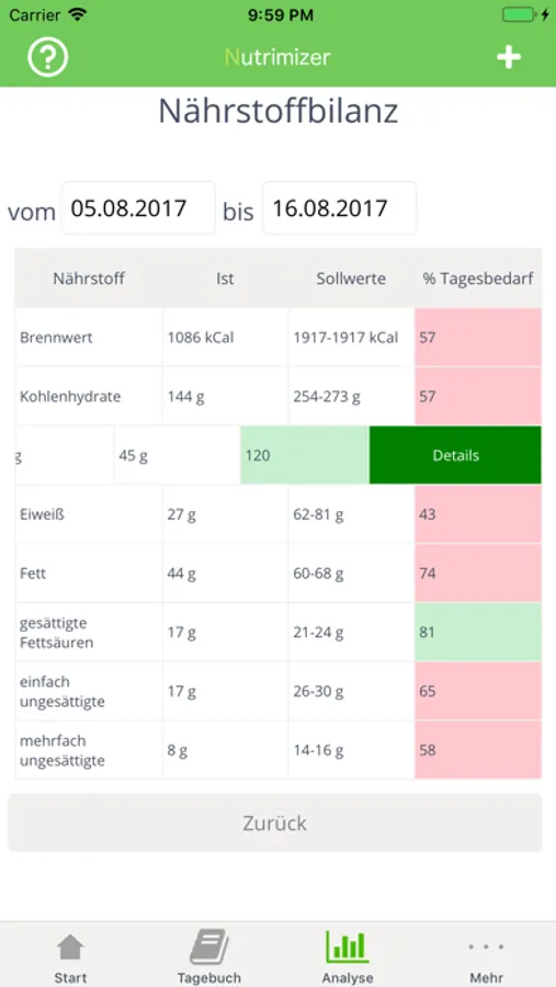 + Nährstoffbilanz der verzehrten Lebensmittel über beliebig lange Zeiträume