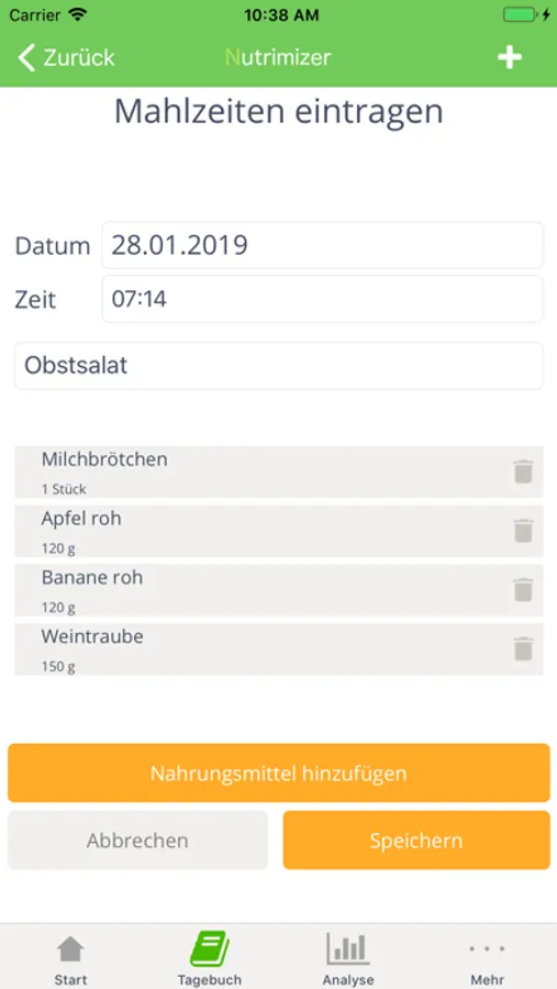 + umfangreiche Lebensmitteldatenbank mit Mengenangaben erleichtert die Eingabe.