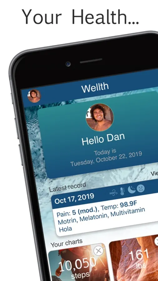 Wellth Health Tracker allows you to track vitals, symptoms, food, medications, exercise and more for just you or your entire family.