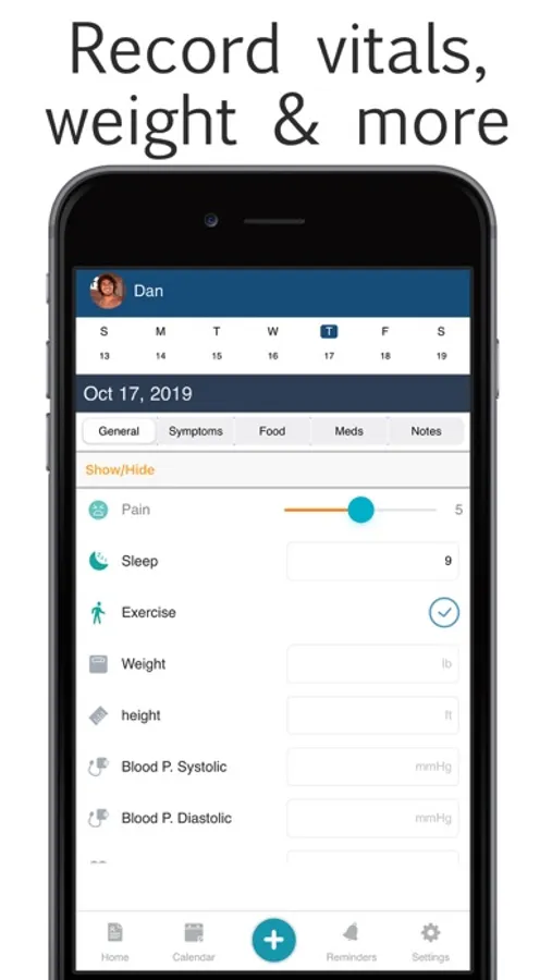 •Track vitals, symptoms, notes, food, weight, medications and more