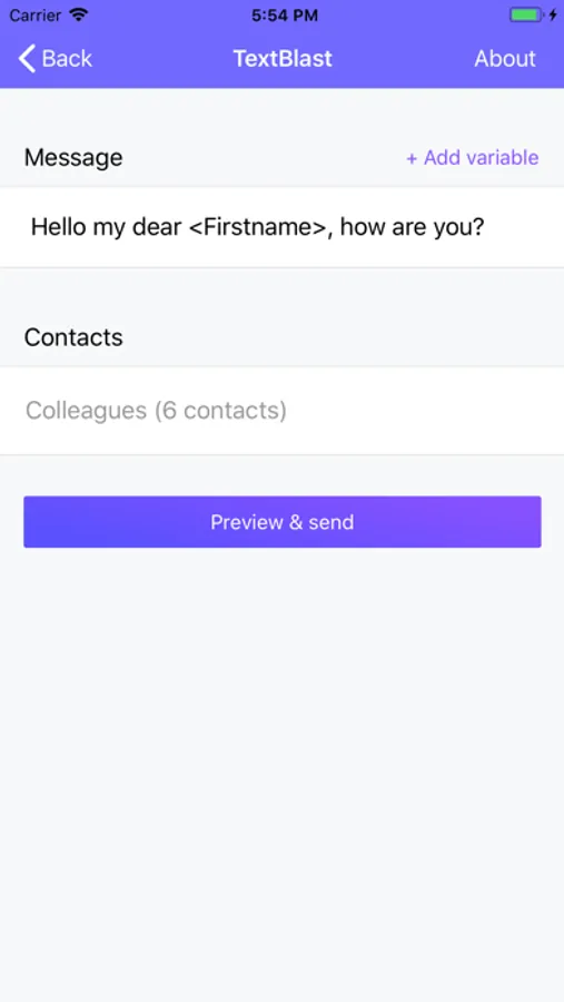 TextBlast will dynamically add the firstname, and/or lastname of your contacts depending on your needs. The SMS app will be opened for each contact with the customized text and the contact filled. You will just have to send them!