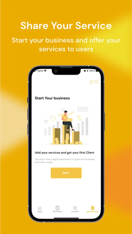 To apply as a service provider, download our application and create a new account, apply for a business account, set your address, verify your data and select the services you can help in, get phone calls from customers nearby, Accept the order or move to the next.