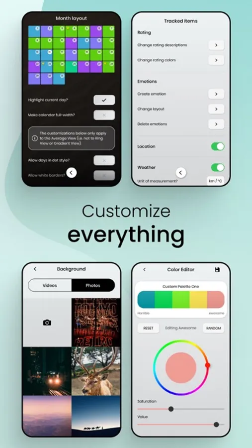 ◆ Customize everything: Moodflow is a very personal app, this is why we give you the freedom of personalizing almost anything!
