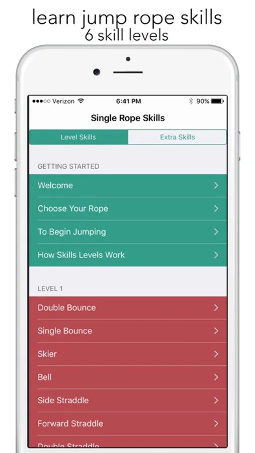 Skipping Skills is the most convenient, fun, and effective way to learn jump rope skills. Video explanations and demonstrations of each skill are taught by world class jump ropers. Additional videos and tips images are included to help jumpers with challenges of the skills. Skills are organized into six increasingly difficult skills levels with over 35 extra skills.
