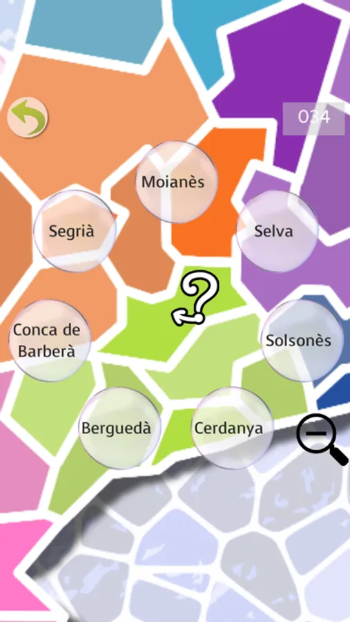 - L’App fa un zoom sobre una comarca i et suggereix diverses respostes possibles.