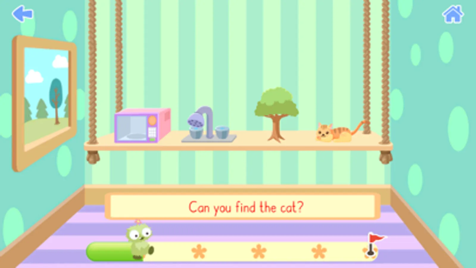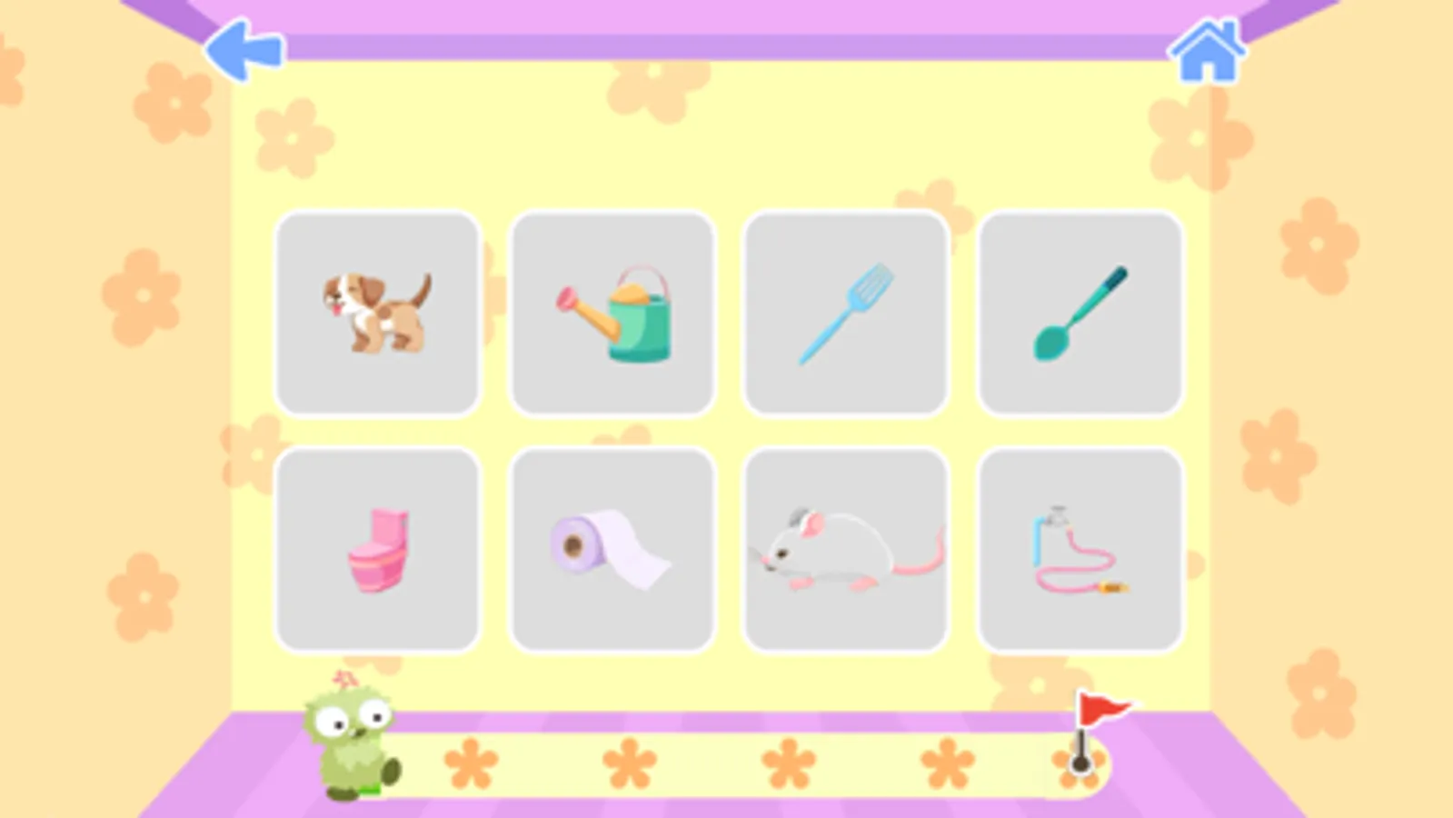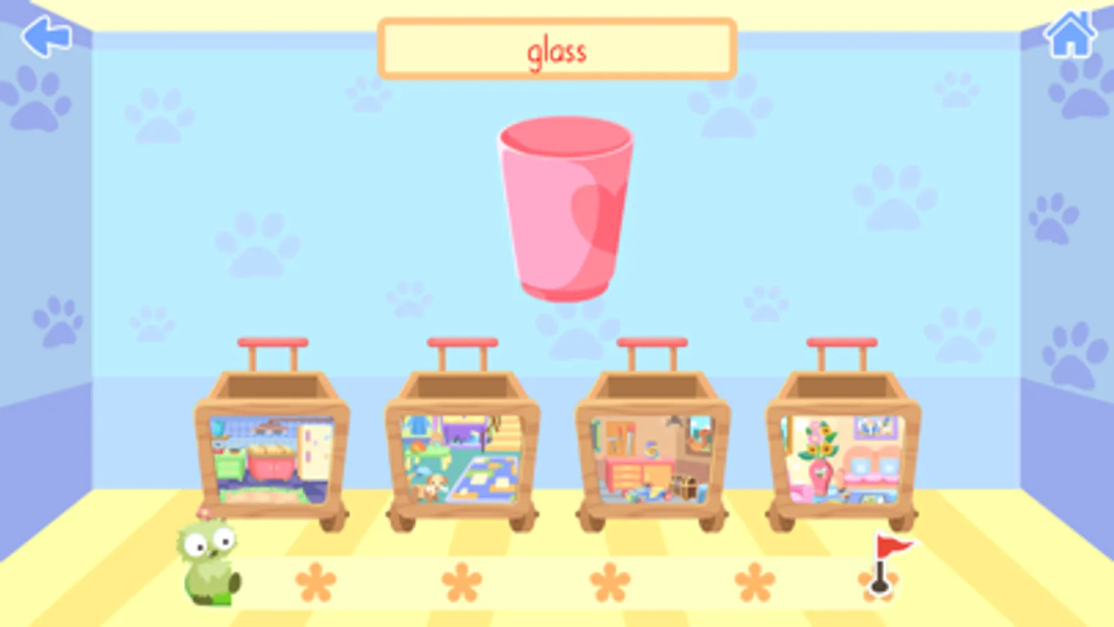 MiniLobes need help to learn new words, understand what goes together and where to find different objects in the House. MiniLobes also need your help when playing the different games you will find in the House. When you accomplished all levels and learned enough words you will make the house glitter. Practice vocabulary and language comprehension in the game MiniLobes - The House.