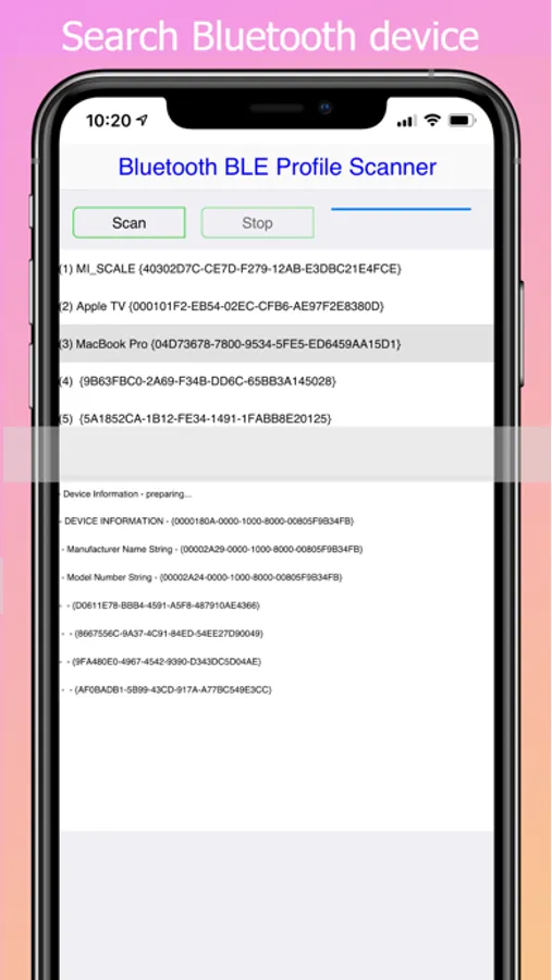 With our app, you can quickly view the following information about surrounding Bluetooth devices: