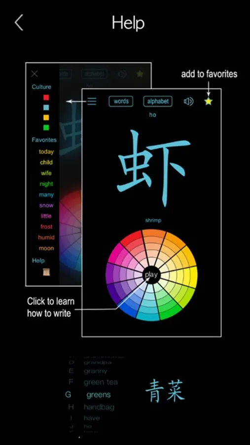 You can select the word in alphabetical order (English meanings) by clicking “words” in the menu bar. Basic everyday Wu words!