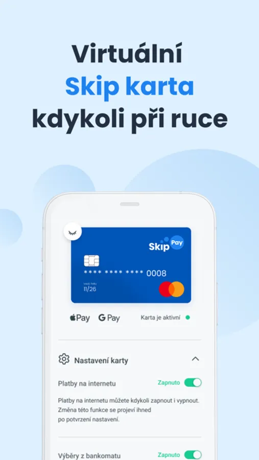 You get it free and easy in our app, just go through a short verification. And what does it get you? We'll extend your warranty for 3 years on almost every purchase, insure your purchase against theft and breakage for 1 year, and send you a Skip card that lets you withdraw from CSOB ATMs for free, even abroad.