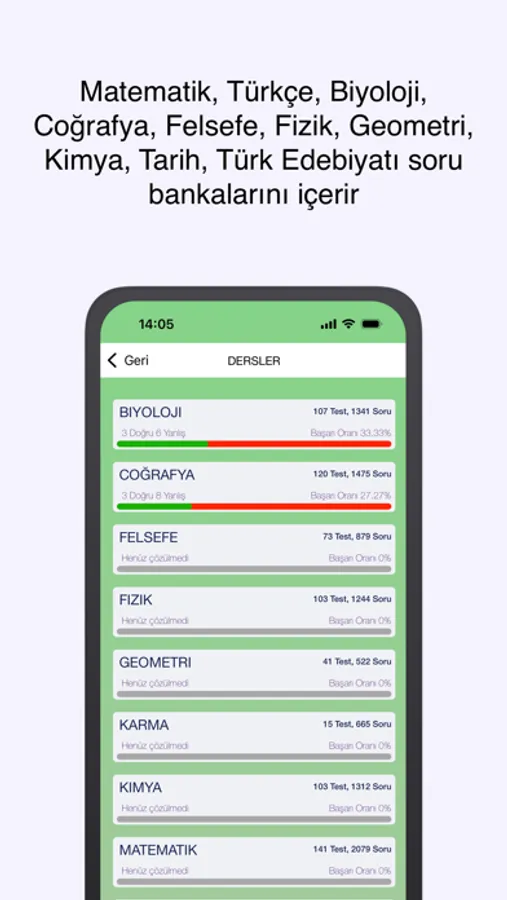 * İlerleme durumunuzu ve başarı oranınızı sürekli takip edin,