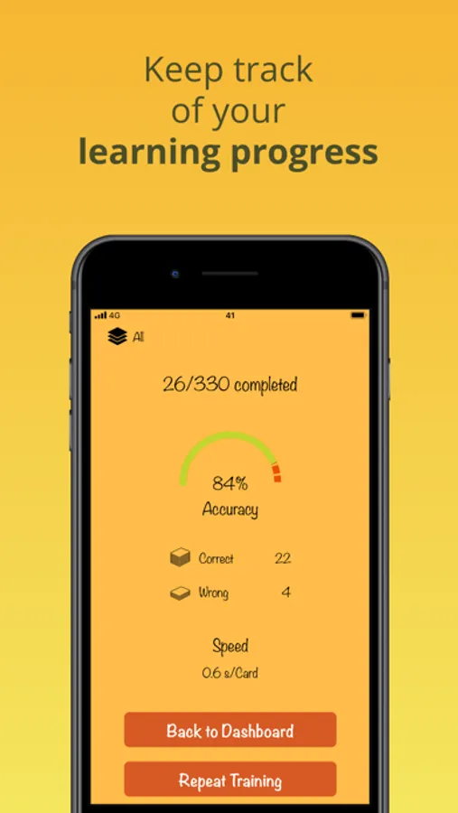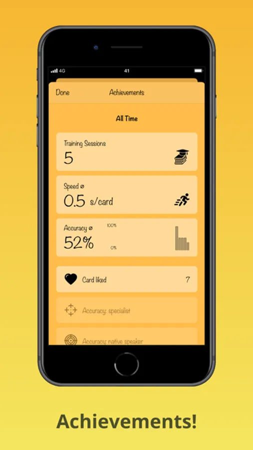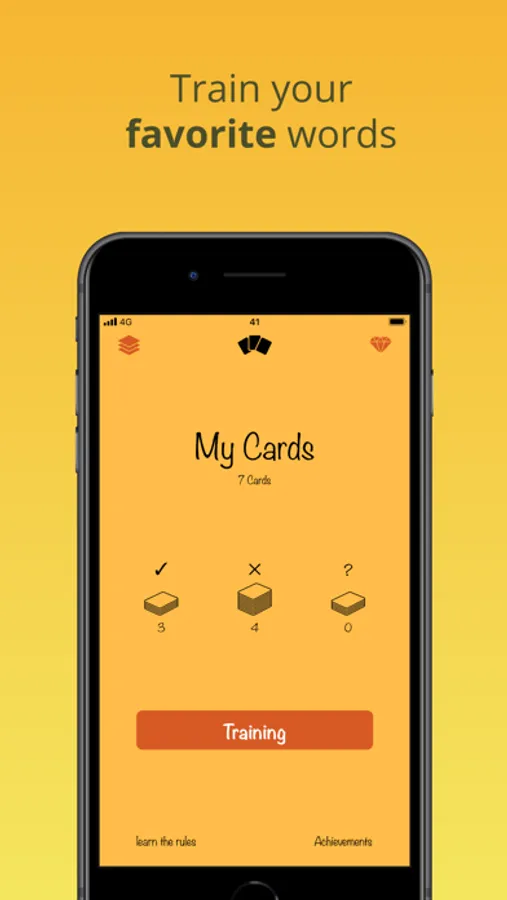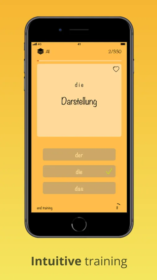 Start a training whenever you want. Der Die Das? will learn with you: Cards you haven't trained yet, that you answered wrong, or that you answered only slowly will re-appear before others. This way your trainings will be most effective.
