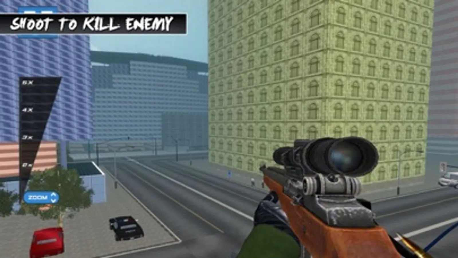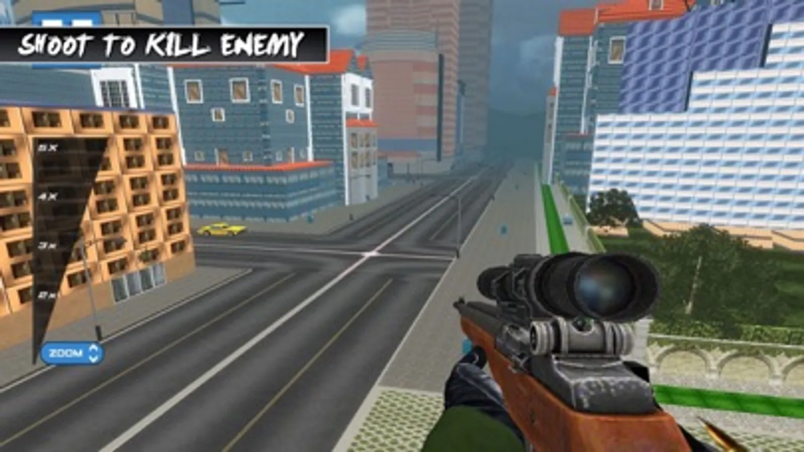 Shoot to kill the targets that might be hidden in the city buildings or be positioned on top of it.